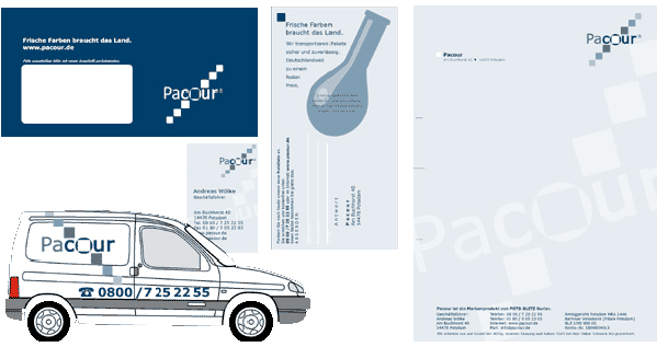 Beispiel eines CI für ein Transporunternehmen für Logo Geschäftspapiere und KFZ-Beschriftung